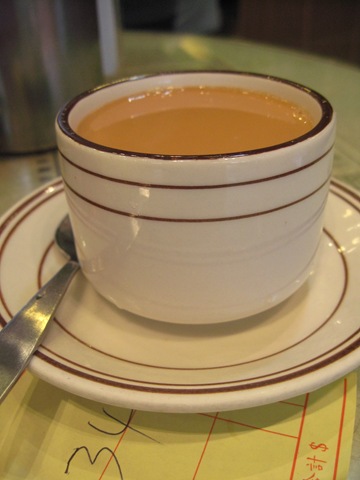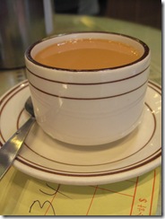 源記在香港或本地內陸幾個美食網站都口碑不佳,雖說沒幾人批評飲食口味,但糟就糟在服務方式還停留在八零年代,據說服務人員欺生又愛飄個白眼看人,沒事還會亂收錢之類之類,可這是後話,回來上網一看才知道大家都烏煙瘴氣的出來,沒做功課又不留神的咱家只曉得肚子餓了想吃東西,偏巧號稱『牛雜專家』的它就在這回投宿旅館附近,嘴饞到快把自己當牛雜吃下去的巴比,咫尺天涯卻兩三天都沒機會踏進去看看,最後一日晏起發現自己被放鳥單飛,很好啊那我就自己混囉,轉兩個彎進了這家茶餐廳,吃個假日 Brunch,熱奶茶雙拼瀨粉。