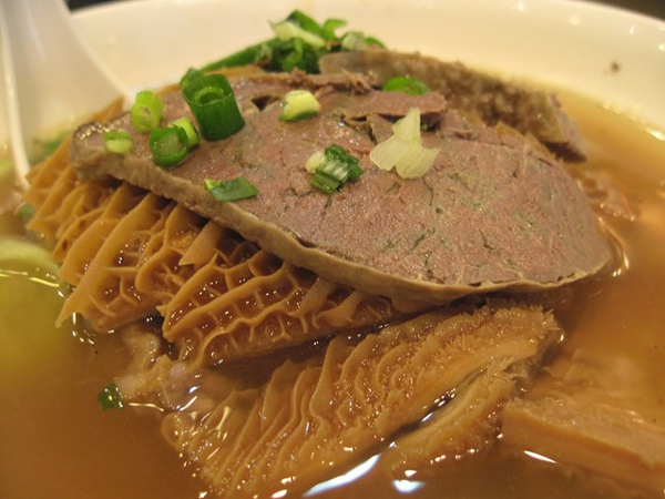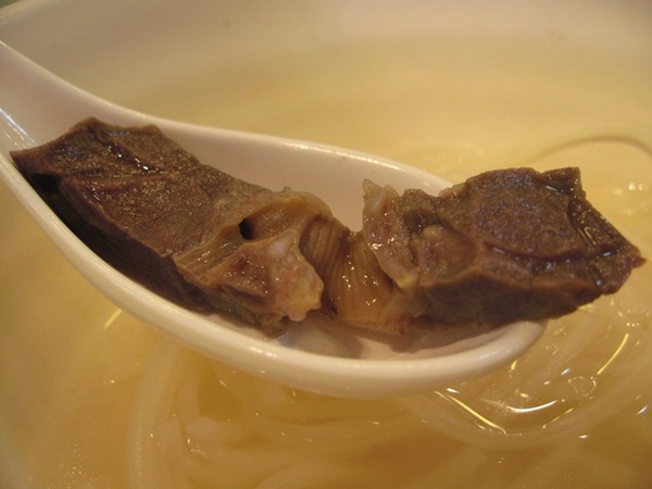 這是例餐,台灣商業午餐者也;瀨粉沒嚐過的朋友可以想像成台灣米粉湯那種粗米粉的 NBA 版,足有兩倍多長,鍋裡一燙就起,所以還帶著彈牙的爽脆感跟入口米香,而且是台灣大碗牛肉麵滿到頂的那種澎湃份量,用看用吃的都能飽死你!兩樣燒味另盛一碟,口味都合格,說不出特別,但一嚐就知道那是『原生地』才能有的庶民味,特別是油雞爽嫩,值得推薦;點完才想起來啊我是來吃牛雜的,明知山有虎,吃到一半心有不甘再加點了碗淨牛雜。