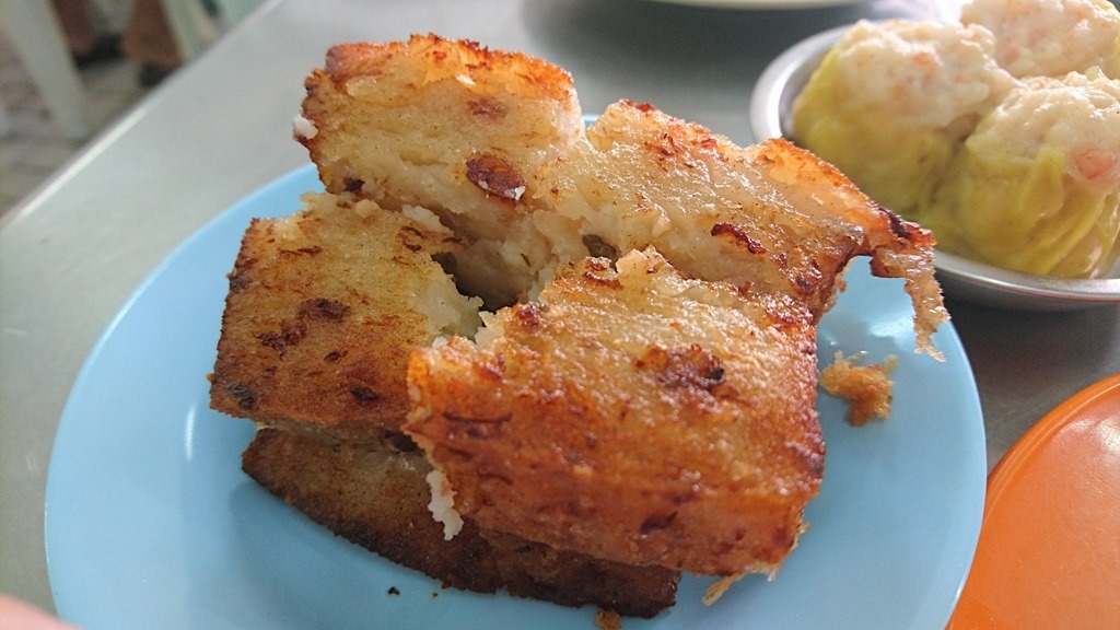 其實大包才撥開吃沒兩口就飽了,天熱說真的胃口很難開,但是阿嫂搬來燒賣蘿蔔糕又立馬戳中我,要,都要。