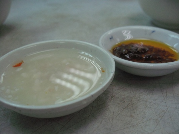 白醋、辣油; 這醋還真夠酸,牙都快掉了~