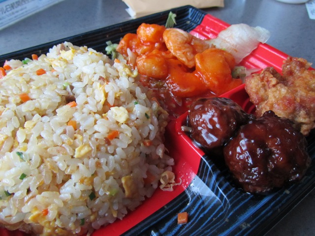 『蓬萊』在關西可是個響噹噹的名號,當初用燒賣加肉包闖下江山(好像全日本知名中餐廳都是這樣出名的?),如今說是本地中華料理第一家並不為過,但是身為華人,我實在不想浪費任何一頓在海外的時間去吃個若有似無的中國菜,國外的親戚朋友看到如此大膽妄言請千萬別介意啊;那時被困在大阪機場,等著飛機要回台北,反正哪裡也去不了,餐廳裡還爆滿到坐不進去,算了,隨便買個便當吃吧~ 說真的還真讚ㄟ!雖然只是個便當,全部現場師傅現點現做,大火炒來非常帶勁,光這一步咱們桃園機場就要學很久了吧?糖醋蝦仁生猛有味,一來五隻,給的超大方,醋溜丸子搭個炸生蔬天婦羅,天下一家,隨餐附贈烏龍茶一杯,還是用台灣自助餐盛湯用的那種保利龍碗裝,差點噗嗤一聲笑出來~ 要講值得改進之處,有啦,即便時隔一個多月我還能記得兩三處,但是想想那種安慰肚腹的感覺,唉呦,管那麼多幹嘛,下回去本店排隊吃吃再說囉!