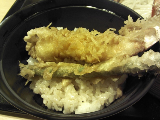 『十和田』在淺草這種老江戶區來說,也是有資歷有來頭的店,巴比挺幸運,來排隊時前面居然只有兩組人馬,是東京人還在家裡看紅白大對抗吧?外面天寒風大,要了份『サ-ビス 特別招待』涼麵組,除了標準份量蕎麥麵,另附有小碗天丼炸蝦飯,江戶風情一次搞定。