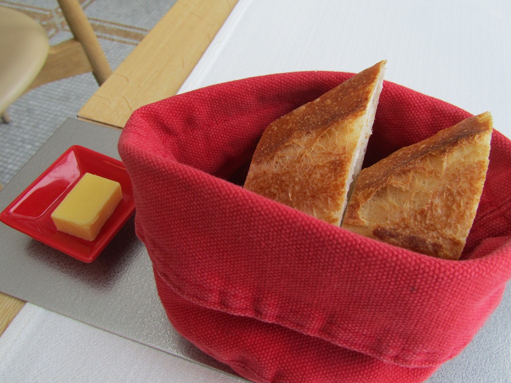 用鹽味奶油泡芙當 Canapé(這中文怎講啊?)是OK啦,但以大師名義來說實在太寒酸,不及格… 不過長棍麵包一上整個顛倒局面,太棒了,真的太棒了!!!看看餐廳規模,這應該是跟外面買的現貨,但跟誰買的呢?小麥粉品質不差,酥爽外殼,有著香鬆而紮實內裡,絕對滿分,奶油應該也是跟外面買的?不過蘊含著的牛乳香味絕對是個人曾嘗試過的日本一,Robuchon 的堅持自製在這裡變成一種無厘頭…