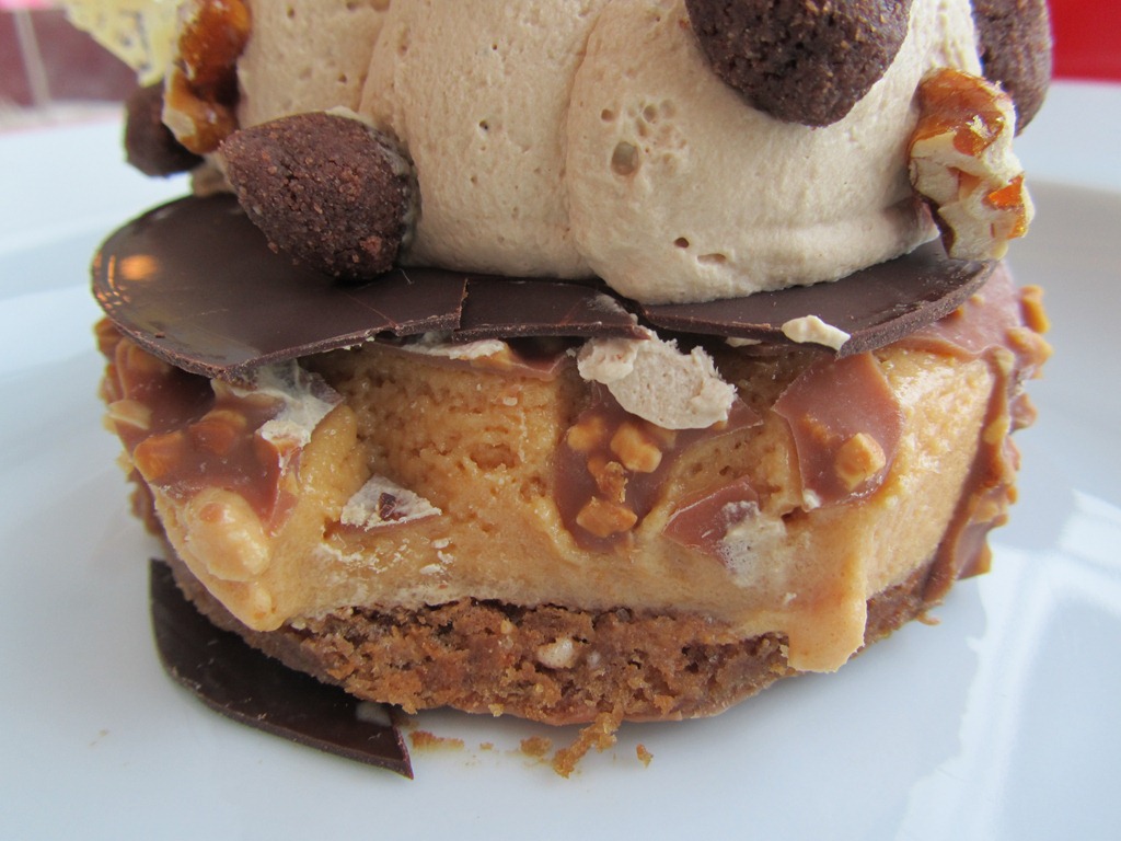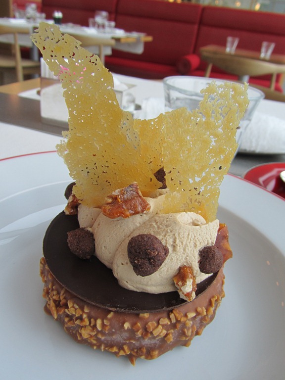 餐後咖啡真的是滾燙,我愛~ 而且手煮風味跟機器加壓榨出來的就是不一樣,自然舒爽的香氣,慢慢泡出來的精華,光憑這杯咖啡就有資格拿米其林!甜點巧克力榛果冰淇淋,內藏用咖啡、威士忌酒調製的糖漿,雖然一上來的角度有點讓我傻眼,差點沒把咖啡噗一聲噴滿桌,畢竟公開場合不能失態,我只能在心裡一直不停獨白:『OPEN將,你怎麼被人家抓來吃了?OPEN將,你犯什麼錯了?』動湯匙前實在忍不住笑出來,抱歉啦OPEN將,我開動囉!