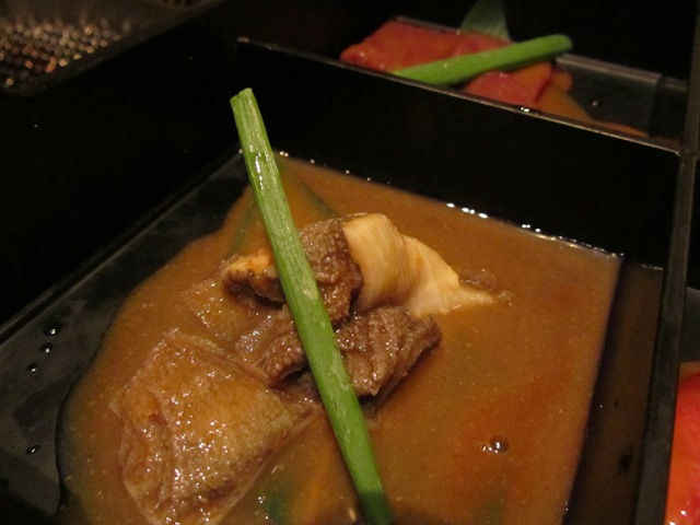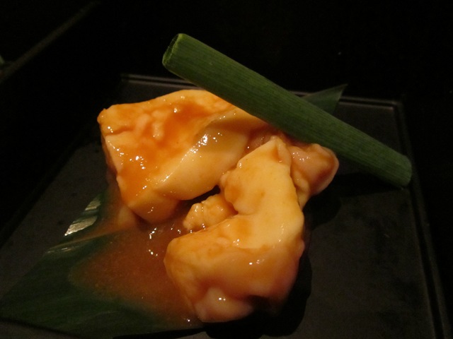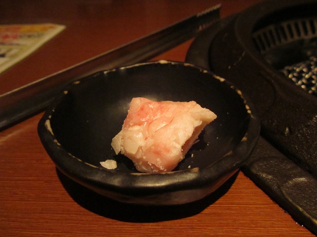吃完扎扎實實的肉,來點牛雜換換胃口!今天店裡安排牛心、牛肝、牛腸跟百頁,果然我牛腸還是不太會烤,丟臉... 百頁端上桌來烤,日本也不常見,我乍著膽子左烘右炙,ㄟ還不錯 香噴噴的又酥又脆,還有點嚼頭,佐點小酒剛剛好!自信心恢復不少