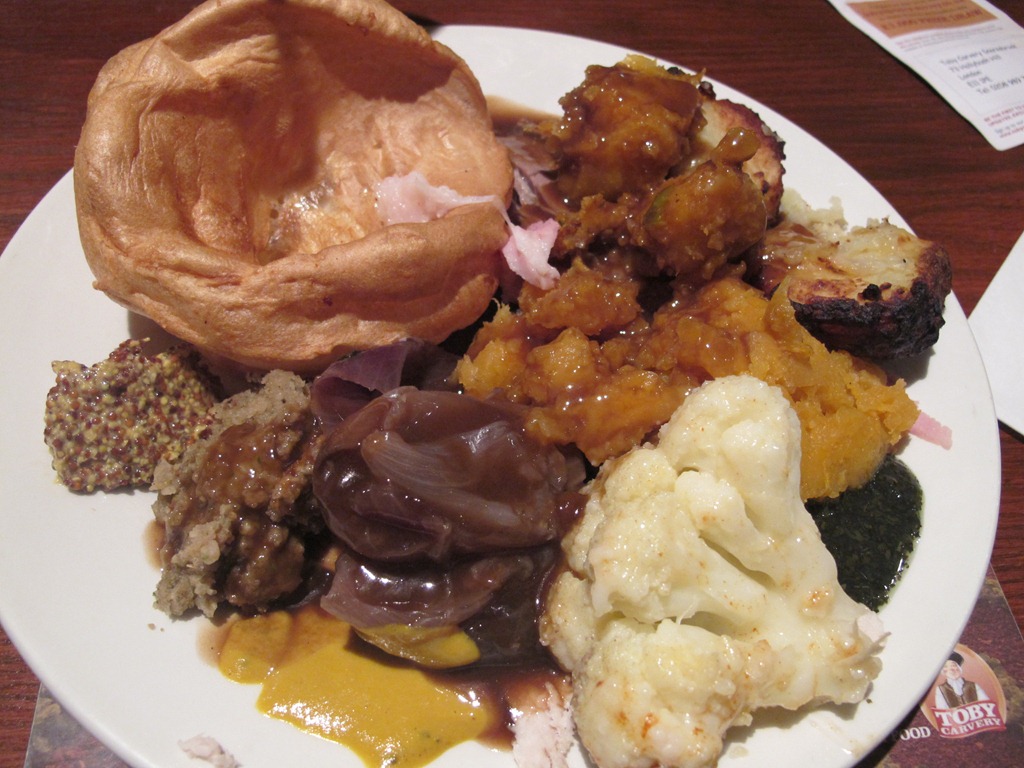 來到大不列顛,順口問一下同遊朋友想吃什麼,結果來個『 Roast Beef 』!本來還以為這對首善之都倫敦也沒什麼,畢竟台灣每個大飯店吃到飽的餐廳不都提供這東西?等真的跟朋友提起才知道這問題大了;這東西,以英國當地人來說屬於週末『 Weekend Food 』,日子對了,真的要,說不定半夜都有酒吧能提供,但是一般日子裡我們一般遊客想吃到還真不容易,選在這種日子找真是… 人家餐廳就沒有啊!