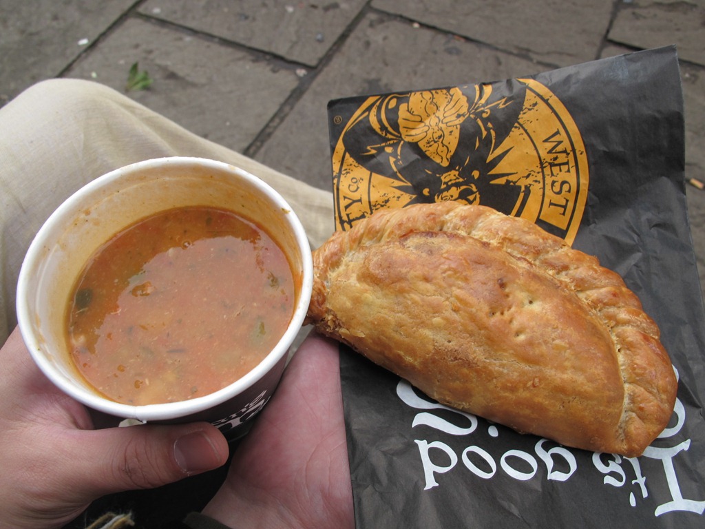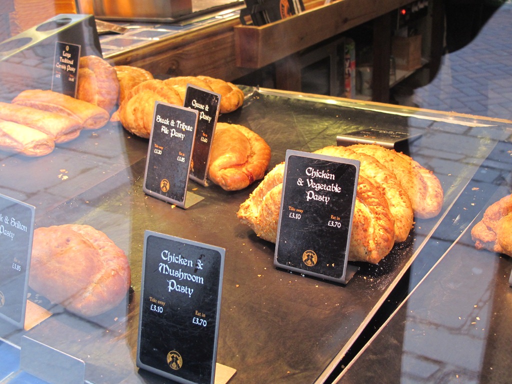 Pasty,我不確定這要怎樣翻譯成中文,但總之是一種半圓形的起酥鹹派,基本上都有一個成人手掌大小,裡面餡料包羅萬象,肉類、起司、蔬菜,全葷全素的都有,是當地人最主要拿來墊肚子、甚至簡單混一餐的東西,說來大概相當於披薩之於義大利人、熱狗之於美國人的感覺吧。