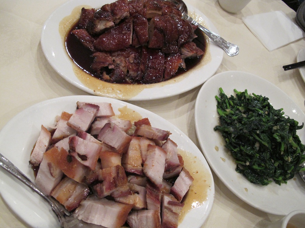朋友帶我們來到這家號稱『倫敦最好吃的燒鴨』,半隻燒鴨,切份燒肉,來盤青菜,配碗白飯希哩呼嚕,恍惚間還真有個FU;燒鴨皮亮色正,味潤而偏清爽,這倒出乎我意料之外,不太像是要做當地外國人生意的方法?!燒肉不知是不是品種關係,肉質偏軟,照樣燒的皮酥油香,這真是好手藝,讓我想想離開香港幾家名店之後,還有哪邊能有這種實力呢?