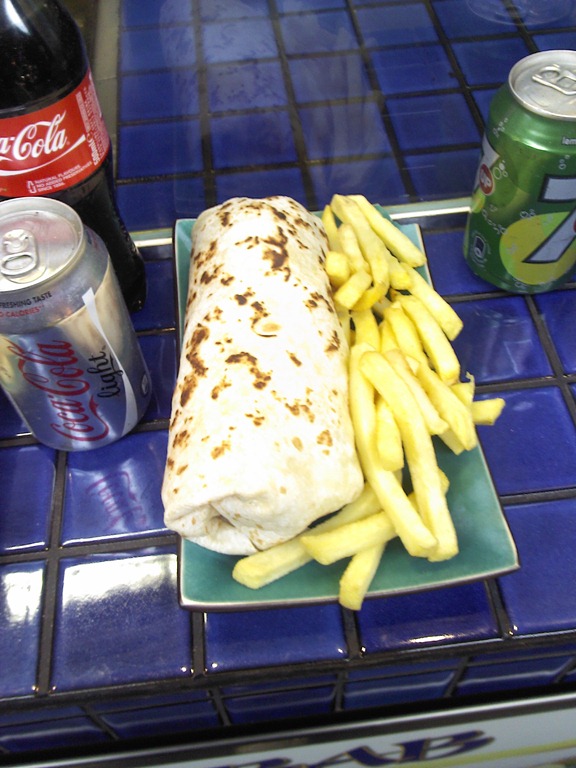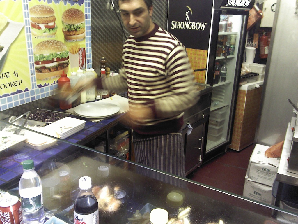 先挑了張油畫給自己,我喜歡裡面的飽滿的色彩,然後又順路走到朋友每次都會來買的小吃攤,包了個羊肉捲餅 Lamb Kebab;這裡把大塊肉切下來,還上烤盤重新炒過,洋蔥香料這麼一歡騰,怎麼能不香?
