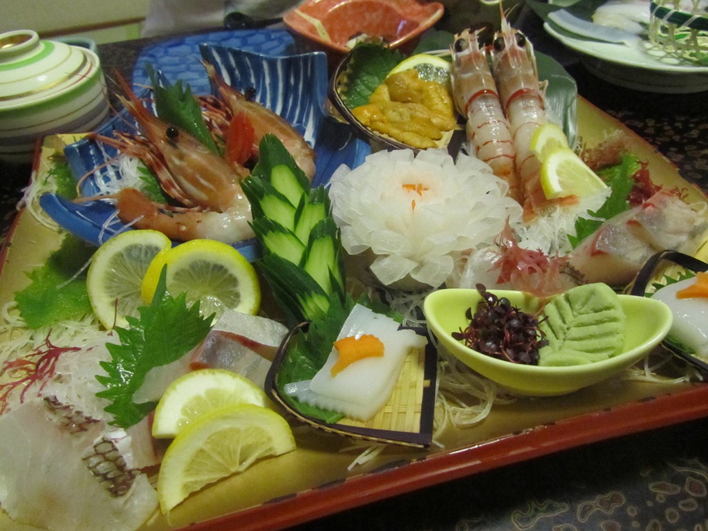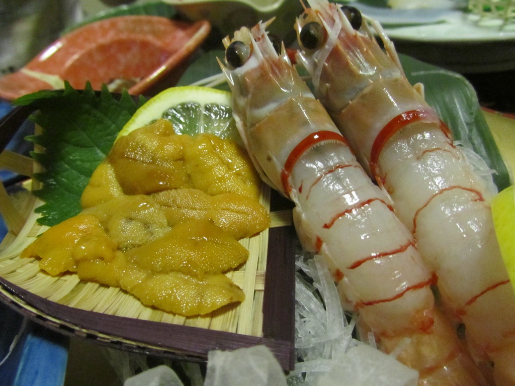 刺身盤兩人份,尺寸之大,幾乎佔掉半張桌子!瞠目結舌之餘,除了感謝還是感謝~ 用料之豪氣,走遍日本各地,只此一處能為之,且非隨意膚淺之物,善哉善哉,我覺得此次海膽刺身隱含稻香,與面太平洋一帶水產品甚為不同,隨意問及女侍,她大姊倒好,回了一句:『啊我們都吃習慣了,沒感覺ㄋ…』直白與理所當然到當場讓我傻眼,這… 麻煩啤酒再一瓶,謝謝。