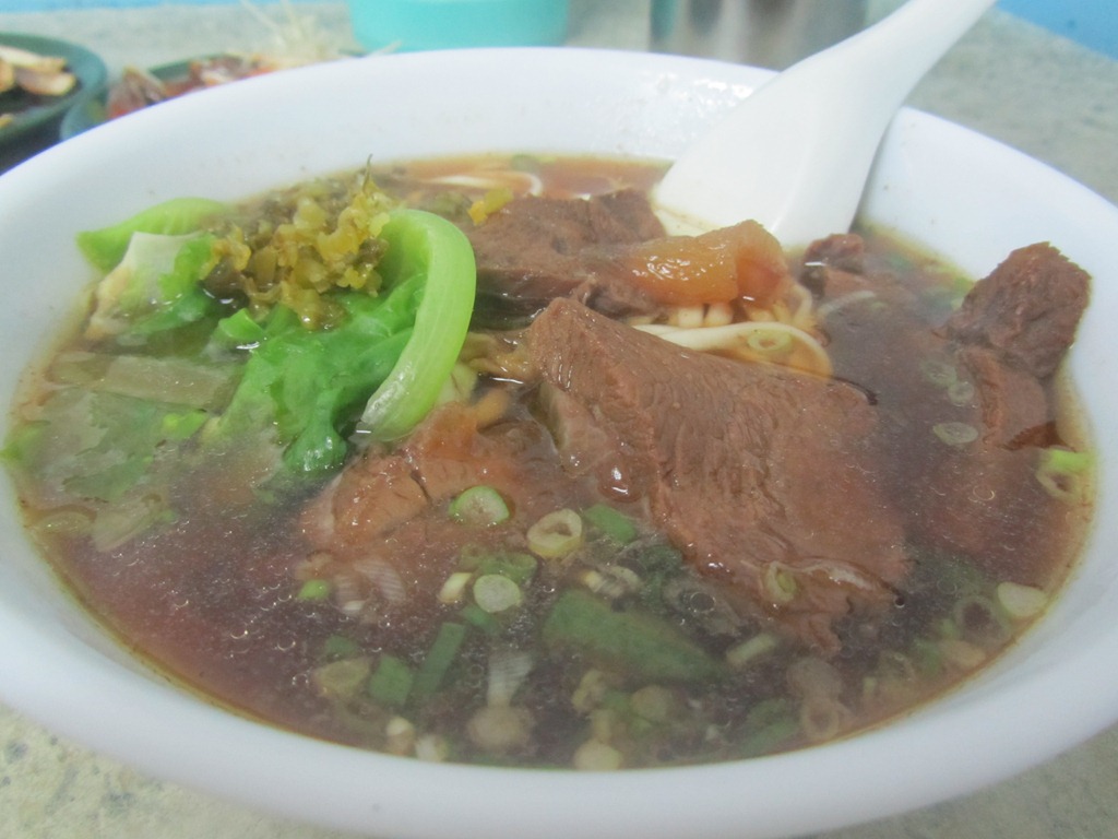 牛肉麵這東西真是台灣之光,火辣噴香者有之,溫順適口者有之,咱家後面麵攤,就在小公園旁邊,故而取名『公園前麵』,俗而有力!湯頭尚可,醬油用稍多,牛肉給的也小氣了點,所幸整體來說還算平衡,煮麵功夫不錯,份量拿來頂一餐剛剛好,當串場點心也不至於太多,價錢合宜,有陣子很愛去這邊。
