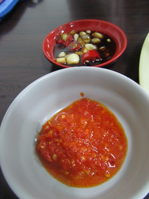辣椒醬同樣是自家剝皮釀製,卻不嗆辣,溫而滑爽,全不同於天龍國來自化學藥劑的激辣卻味薄、或取其醇卻膩不可當;單單兩味沾醬說有多醒世驚人,那未免過於其詞,但只講個恰如其份,卻又似對不起長年孕育的風華,怎麼說才好呢?