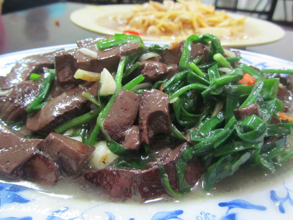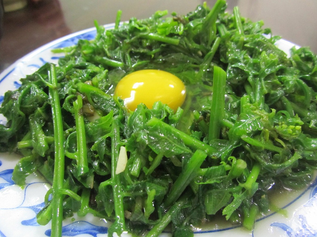 這種山菜就叫過貓?稍微清炒之後打顆蛋,拌開來吃,山菜本身就滑潤,再用上生蛋攪拌,一下子還真有夠沽溜,很難用筷子挾呢!清香順口,煞是特別,至少我是沒在台北遇過啦,不知是客家密技,或是獨家發明?