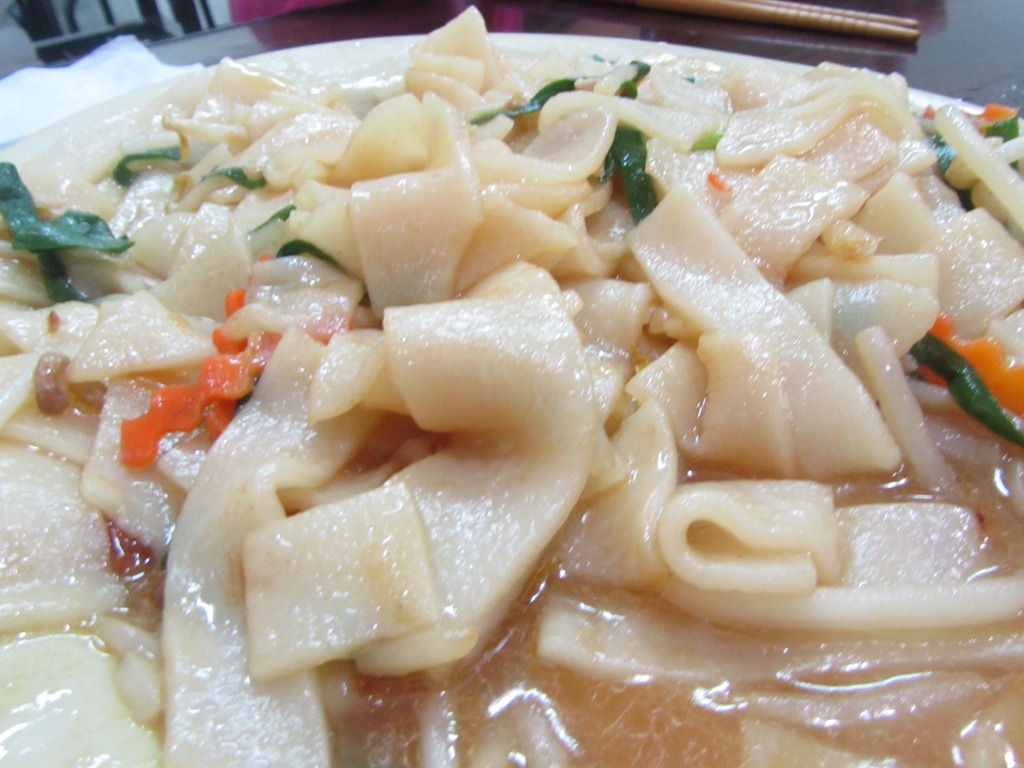 偏巧有人就是到了客家庄,一定要點粿條,實話說我個人並不愛這類百分之九十工廠成品的玩意兒,點了一嚐果然後悔,不過後悔的是我,不該妄下斷言,拜店家用油少而新之賜,這炒粿條真是潤而適口,噴香不膩,妙的是米香亦十足,難道這種產品台北就買不到嗎?台北師傅就真的炒不出來嗎?這我不信,如果說,這種產品根本沒賣到台北,本地就被搶光光了,那,其實我更信服。