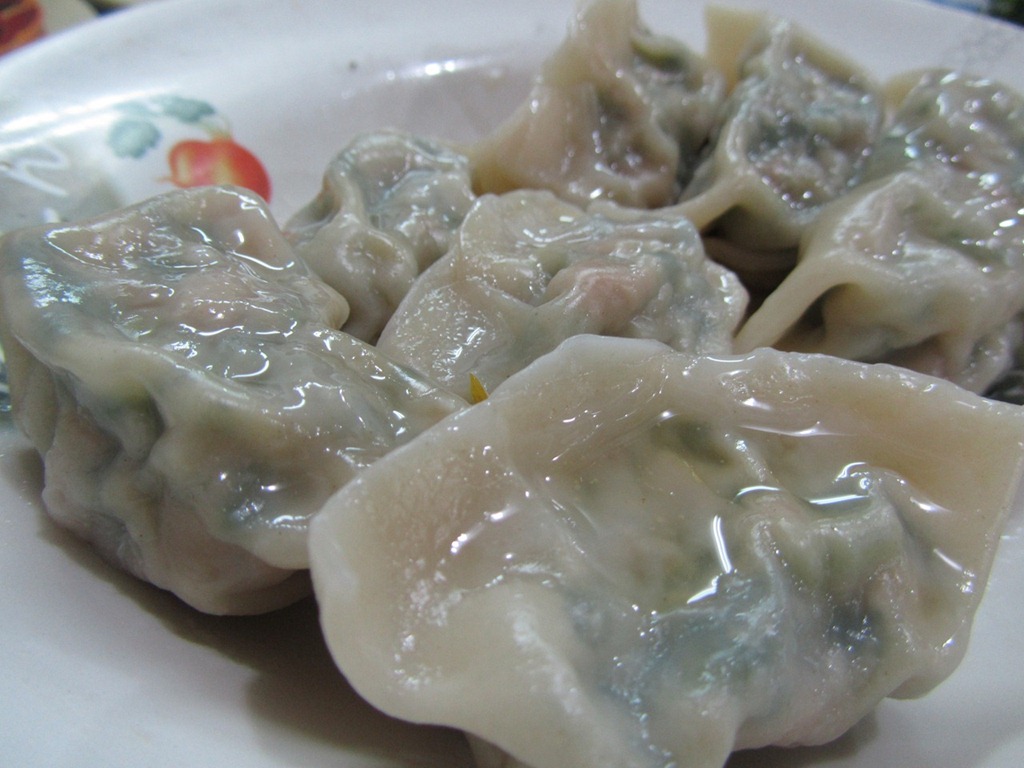 結果接著還真點了幾乎百分之百工廠成品的水餃上桌,也還真有人說要,我也真是快昏倒了… 東西上桌一瞧,機器麵皮,大拇指跟食指一掐,動作快點四五秒就能產出一顆,煮好上桌前還淋點香油,這種東西你叫我吃?至此純然是褻瀆了我的童年、我的祖母,跟所有知道水餃這碼子事的人;果然吃了兩顆就沒人再碰,不過東西沒吃完就是浪費,而我身為男子漢的義務之一就是把浪費降到最低。