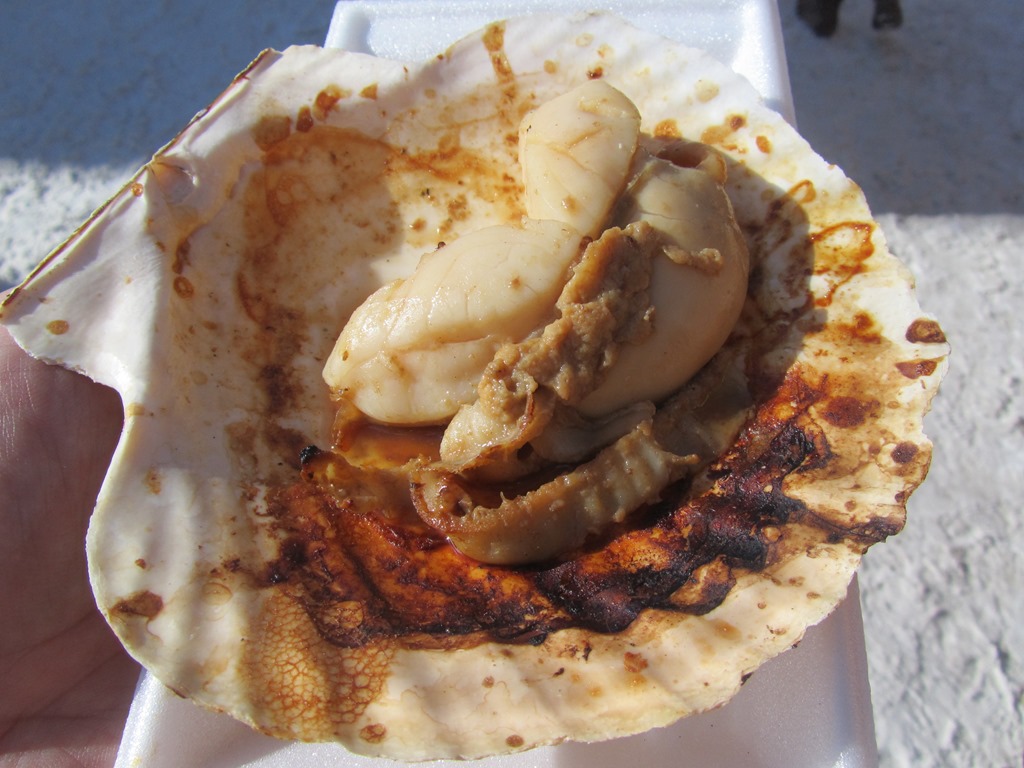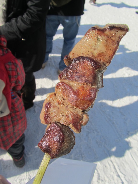 一片扇貝,一串牛舌,嚴冬陽光下,味道就是特別好,可惜那天飯店裡不預警的早餐吃多了,負荷不了這場雪國盛典,且把遺憾的部分當成明年的志願吧,寒風暴雪中吃喝,聽來會很刺激~