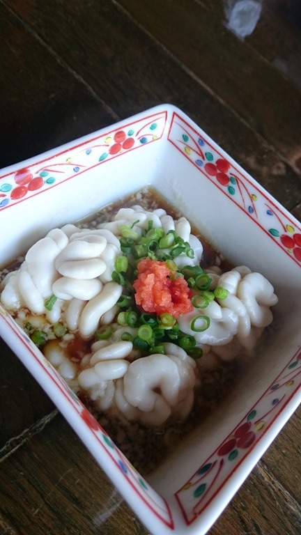 這醋燒鱈魚白子現點現做,上來還熱呼呼的像布丁餡一樣,飽滿馥腴,吮覆間帶著絲絲甜味,或許只是剛巧上在凍滷魷魚的後面,可那種暖胃暖心的感覺就更明顯了。