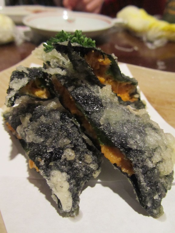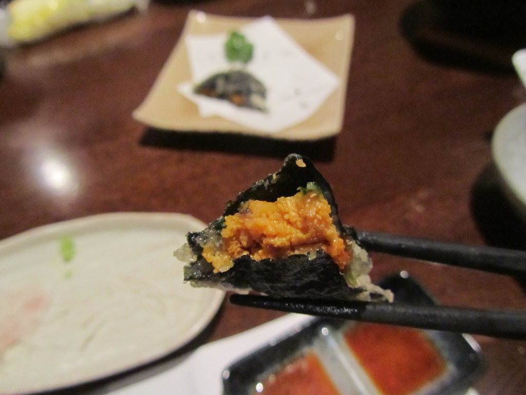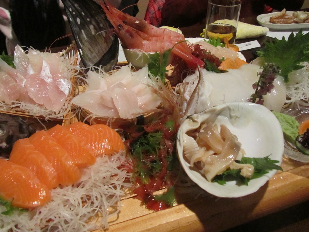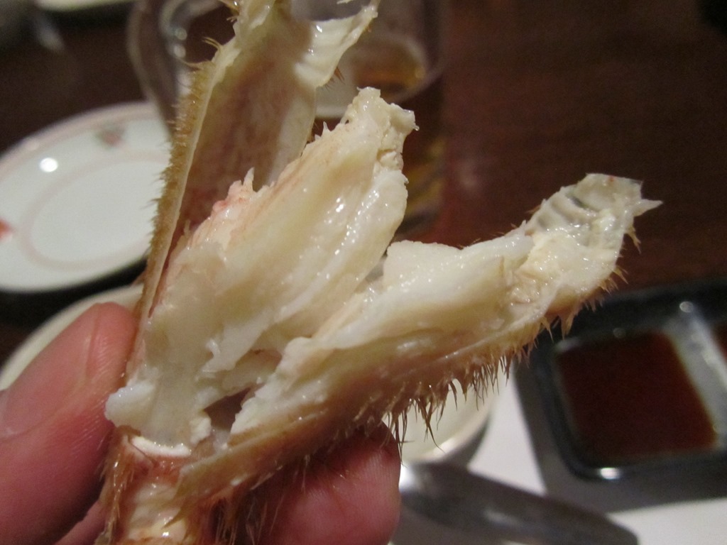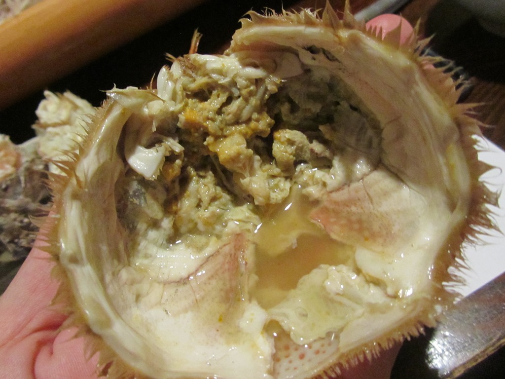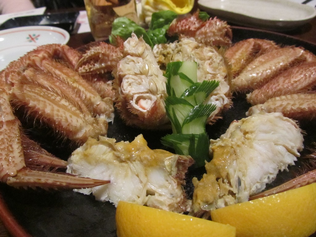 札幌雪祭的最後一個週末,被拖來參拜一番,能恭逢其盛當然是美事一樁,寒天凍地中,大和民族再次展現無人能及的事前規劃與執行能力,從交通流向、人力安置、節目編排、場館規劃,乃至於垃圾桶要放那邊,都有一套絕對性的理論可以遵守,每次看到像這樣的鉅細靡遺,都只能嘴角微牽的偷偷一笑,有你的! 可是,那個季節,來北海道卻不找點好吃的,應該算是違反某一種會被處以死刑的罪名吧? So, here I come~ 旅館旁邊一個實在沒有啥名氣可言的小餐廳,泡在一堆找樂子的上班族之間,注重細節的大和民族,始終還是讓不特別期待的我,佩服佩服 北海道有所謂『三大名蟹』,對我來說,毛蟹才是真正首選;味鮮甜,肉豐膏腴,而且畢竟海蟹,口齒間吞吐轉圜都還是輕巧簡單,馥美之餘,不缺纖細,比起帝王蟹的豪邁蟹腳,回韻可就無窮多了。 北國師傅刀工處理總是令人讚嘆,一節一節的螃蟹腳都剖好了才裝盤,爽朗乾淨又明白,跟中餐師傅用刀背大拍幾下結束剛好成了對比,我自己猜測是螃蟹這東西,基本上中餐以河鮮為主,就算有殼也都不硬,拍一拍,味道就能出來,硬咬也不妨礙;日本以海貨為主,師傅不先幫忙劃幾刀,又不是深海大章魚,活人誰能啃開一厘米厚的蟹殼啊? 像被下了咒一樣,現在看到公蟹蟹殼,總是抓起來就往裡面倒點清酒然後一攪拌,其味醇醇也。 我現在是怎麼也想不起來那時何以點到這~ 麼~ 澎派的生魚片拼盤,下面的那個木盤,足足有 60公分長、40 公分寬,而且在你連底下襯托的蘿蔔絲跟海菜吃掉至少一半前,你根本連木盤本身都看不到! 甜蝦、干貝、北寄貝、軟絲、鮭魚、鰤魚、八角… 等一下我說到鮭魚了嗎?看看那個色澤,肌裡間滑潤而全無黏滯,瞬間想起『鮭兒』等級的高檔貨,雖說我確實也付不起那個錢吃一片以上,但美滿的感受倒是一點也不少。 八角魚在台灣海產店並不難見,但有本事做成生魚片上的,百不聞其一,問題是在材料本身,既然不美,也就不強求;能在北海道遇上直接把八角魚送上每日例盤的,我相當意外,但,並不驚訝;寒流勁潮,沿海魚種嚐來都紮實而脆甜,口感豐富,每次在北海道吃生魚片都有一種拎背以後想移民到這邊的感覺... 冷海鮮吃多了,烤個牡蠣吧!整個手掌大,唰的一口~ 滿足。 吃飯不是只有我一個人,大眾口味要顧到,整支雞腿中間塞了明太子下去烤,太討喜的口味了,得分滿點,受歡迎度百分百! 一夜干這種東西是我在日本很忍不住的選項,不過這邊的醃漬更像是灑鹽後直接烘烤,另有其淡雅爽朗。 總之呢,我本人是喝開了;但雖然全世界我都能喝得很開,北海道卻是少數能真正讓我覺得吃跟喝有同樣實力相搭配之處,所以,又請老闆推薦一下,結果出來了這個:炸海膽海苔捲。 阿就是很好搭啊,還要說什麼呢。 然後最近迷上了純米系的日本酒,搭餐都找這一味;『北斗隨想 しすく 取り』還算是比較容易在東京講究點的居酒屋能遇到的北海道代表作,但是金滴酒造『北の純米酒 しぼり』已可算是產量少的罕見作品了,另一款山形縣亀の井酒造『黑 ばくれん』就真的是即便日本藏家都難得一見的希罕貨,店裡單杯要價八百日幣,著實驚人!但是看著女服務生照樣滿杯滿盅的在倒,非得滿到桌上才盡興的痛快,趕快說對不起擦擦乾桌子、接著又好像覺得欠你一口似的硬是再多加兩下,對,我又喝多了... 但喝更多的人是服務生吧? 女服務生很好奇我的來歷,那邊畢竟不是普通觀光客會出現的地方,當我跟他說我來自台灣,台灣有一種語言叫做台灣話的時候,她真的嚇到了,『世界上有這種東西?』對不起… 反正你下次來,我招待,一定讓你盡興,就像這次我到你店裡一樣。