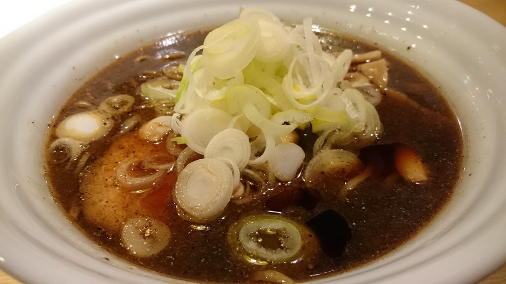 上次吃醬油湯底拉麵已經不記得是何時了,大抵是昭和年間了吧?基本上對這路風格沒啥喜歡討厭,就是... 醬油的味道嘛;富山黑醬油原本該是什麼顏色什麼味道真的從沒遇過,但是在用高湯沖過之後還能黑到像是倒了墨汁進去還真是叫人嘆為觀止,口味結實深沈而集中,相較於鹹味,一種幽然的焦香反而更引人注意,搭配柴魚片為主所吊出來的魚介系湯底,合拍的程度比起關東最近流行的鹽味與魚介、鹽味與雞湯還更要高上幾籌,這是黑醬油的魅力呢?還是柴魚片用的好呢?